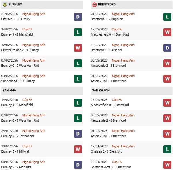 - Burnley thắng 5, thua 3 trong 8 trận gặp Brentford gần đây.