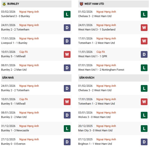 Burnley vs West Ham là cuộc đối đầu mang tính tương phản về phong cách. Burnley đang chú trọng kiểm soát bóng, triển khai từ tuyến dưới và duy trì nhịp độ ổn định trên sân nhà. Tuy nhiên, điểm hạn chế của họ vẫn là khâu dứt điểm và khả năng phòng ngự khi bị phản công nhanh. Ở chiều ngược lại, West Ham tỏ ra nguy hiểm với lối chơi thực dụng, giàu thể lực và khả năng phản công sắc bén. Đội bóng thành London thường chơi chặt chẽ ở trung tuyến, tận dụng tốt các tình huống cố định và những pha lên bóng nhanh ở hai biên.