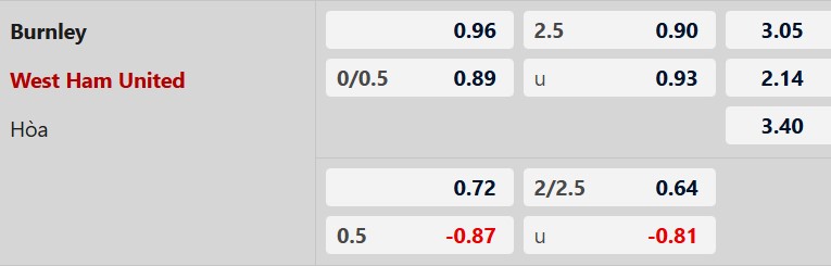 Nhận định kèo tài xỉu Burnley vs West Ham: