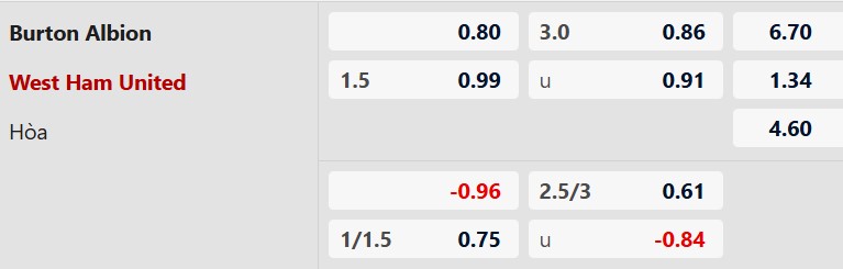 Nhận định kèo châu á Burton vs West Ham: