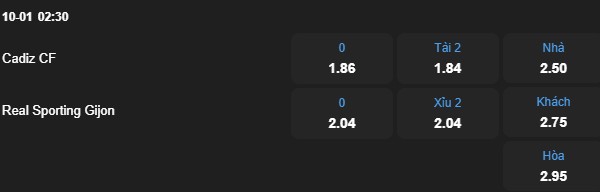 Cả hai đội đều đang sở hữu hàng phòng ngự thi đấu tập trung. Thống kê từ Whoscored chỉ ra rằng 6 trận gần nhất của Sporting Gijon đều kết thúc với tổng tỷ số dưới 2.5 bàn. Hơn nữa, Gijon đã giữ sạch lưới trong 3 trận liên tiếp. Cadiz dù ghi bàn đều đặn nhưng trước một đối thủ đá thực dụng như Gijon, trận đấu khó có thể diễn ra cởi mở. Với mức tài xỉu 2 bàn, cửa Xỉu là lựa chọn vô cùng tiềm năng.