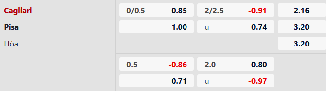 Nhận định kèo tài xỉu Cagliari vs Pisa: