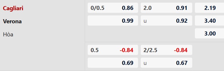 Nhận định kèo châu á Cagliari vs Verona: