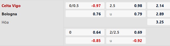 Nhận định kèo tài xỉu Celta Vigo vs Bologna: