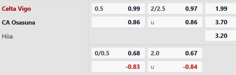 Nhận định kèo châu á Celta Vigo vs Osasuna:
