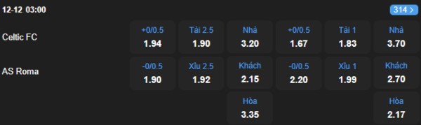 Celtic chỉ ghi được 2 bàn trong 2 trận gần nhất, trong khi AS Roma thậm chí còn không ghi được bàn nào. Cả hai đội đều có xu hướng chơi thận trọng, đặc biệt là trong một trận đấu quan trọng như thế này. Do đó, kèo Xỉu sáng giá ở trận đấu này