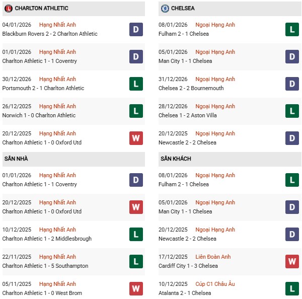 Thống kê phong độ Charlton vs Chelsea: