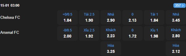 Nhận định kèo tài xỉu Chelsea vs Arsenal: