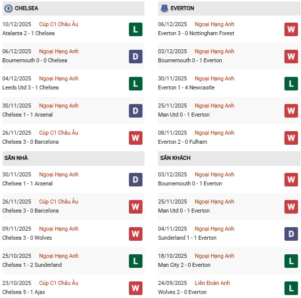 - 10 lần gặp nhau trước đó, Chelsea thắng 4 thua 3 và hòa 3 trước Everton.