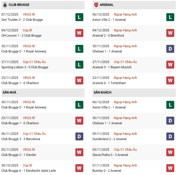 Về phía Club Brugge, họ đang trải qua giai đoạn tồi tệ khi chỉ giành 1 điểm trong 4 trận Champions League gần nhất và vừa sa thải HLV Nicky Hayen sau hai thất bại liên tiếp ở giải quốc nội. Dù có thành tích bất bại 5 trận gần nhất trên sân nhà tại C1, nhưng việc phải đối đầu với một Arsenal đang ở đỉnh cao phong độ, cùng với việc đã thua 14/18 trận đối đầu các đội Anh, đặt ra một thử thách cực lớn.