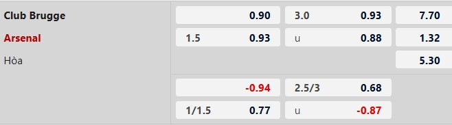 Club Brugge thua 5/6 trận gần đây theo tỷ số châu Á, thua 3/4 trận vừa qua ở Champions League. Phía bên kia, Arsenal thắng 6/9 trận trước đó, toàn thắng 5 trận ở Champions League.