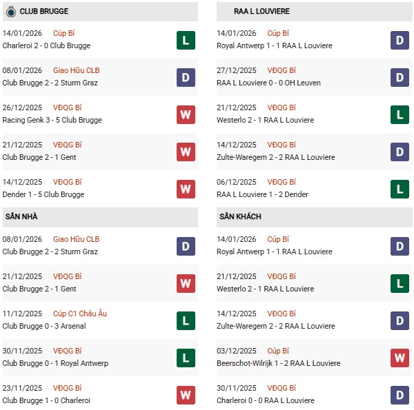Thống kê đối đầu Club Brugge vs La Louviere: