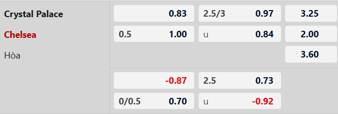 Nhận định kèo tài xỉu Crystal Palace vs Chelsea: