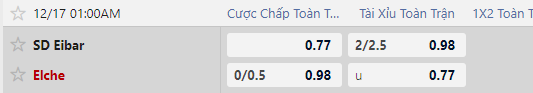 Nhận định kèo Eibar vs Elche, 01h00 ngày 17/12, vòng 1/16 Cúp Nhà Vua. Phong độ hiện tại của 2 đội là khá tương đồng nhau chính vì vậy đây hứa hẹn sẽ là một trận đấu cân tài cân sức.