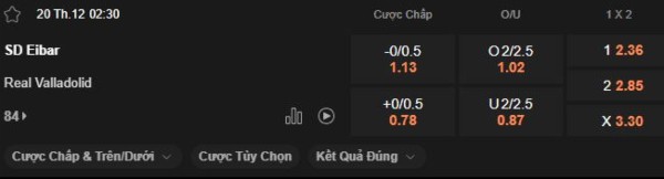 Nhận định kèo tài xỉu Eibar vs Valladolid: