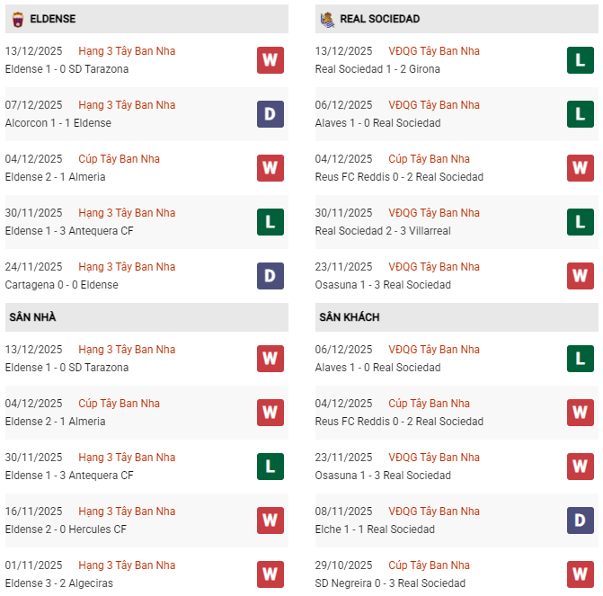 Thống kê đối đầu Eldense vs Real Sociedad:
