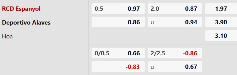 Espanyol và Alaves đều không thi đấu quá xuất sắc giai đoạn gần đây, chính vì thế mà để hai đội tạo ra trận cầu hấp dẫn khó mà xuất hiện. Espanyol cùng Alaves sẽ đề cao sự thận trọng, cố gắng thi đấu chắc chắn để hướng tới việc có điểm cho bản thân mình. Chính vì thế dự đoán số bàn thắng xuất hiện khi Espanyol và Alaves gặp nhau sẽ từ 1-2 pha lập công, mặc cho những trận 2 đội gặp nhau trong quá khứ thường xuất hiện nhiều bàn thắng.