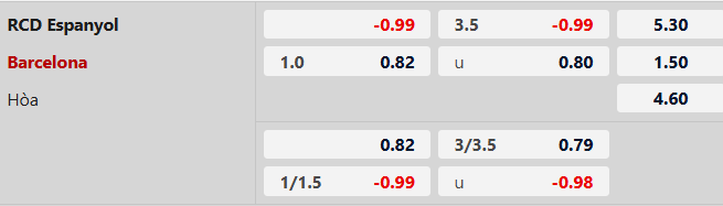 Nhận định kèo châu á Espanyol vs Barcelona: