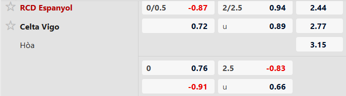 Nhận định kèo châu á Espanyol vs Celta Vigo: