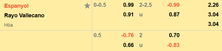 Nhận định kèo châu Á Espanyol vs Rayo Vallecano: