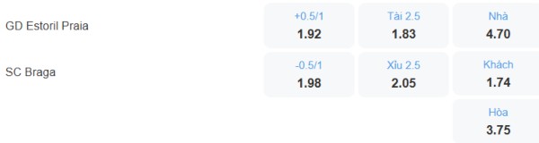 Phong độ của Braga tốt hơn Estoril nhiều (4 chiến thắng liên tiếp so với thắng 1, hòa 1, thua 2). Cộng với chất lượng đội hình tốt hơn và thành tích đối đầu cũng áp đảo thì sẽ không có gì ngạc nhiên nếu phần thắng trận này thuộc về đội khách. Chính vì vậy với tỉ lệ kèo Braga chấp 3/4 trái thì nên tin tưởng vào đội khách.