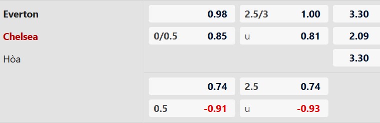 Nhận định kèo Everton vs Chelsea, 00h30 ngày 22/03, vòng 31 Ngoại Hạng Anh. Được đánh giá cao trên sân khách nhờ đẳng cấp hơn hẳn chủ nhà nhưng với phong độ nghèo nàn Chelsea khó lòng vượt qua thử thách hôm nay.