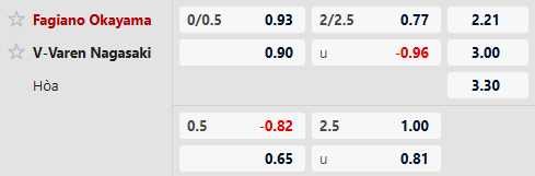 Nhận định kèo tài xỉu Fagiano Okayama vs V-Varen Nagasaki: