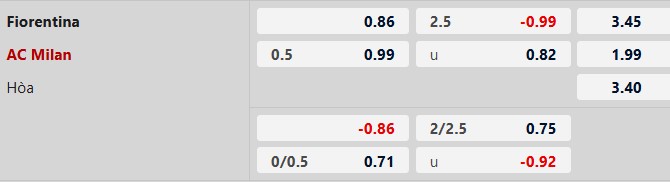 Nhận định kèo châu á Fiorentina vs AC Milan: