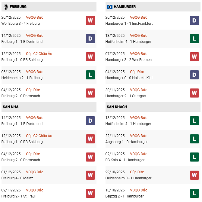Nếu như Freiburg tự tin nhập cuộc khi thi đấu trên sân nhà, Hamburger lại khiến nhiều người yêu mến ngán ngẩm với phong độ bạc nhược khi thi đấu xa nhà. Tính tại giải VĐQG Đức mùa giải 2025/26, đội bóng thành phố cảng Hamburg chỉ có được 2 trận hòa và thua tới 5 lần sau 7 trận đã đá. Tính tại mọi đấu trường, Hamburger chỉ thắng có 1 lần ở 10 trận sân khách chính thức vừa rồi.