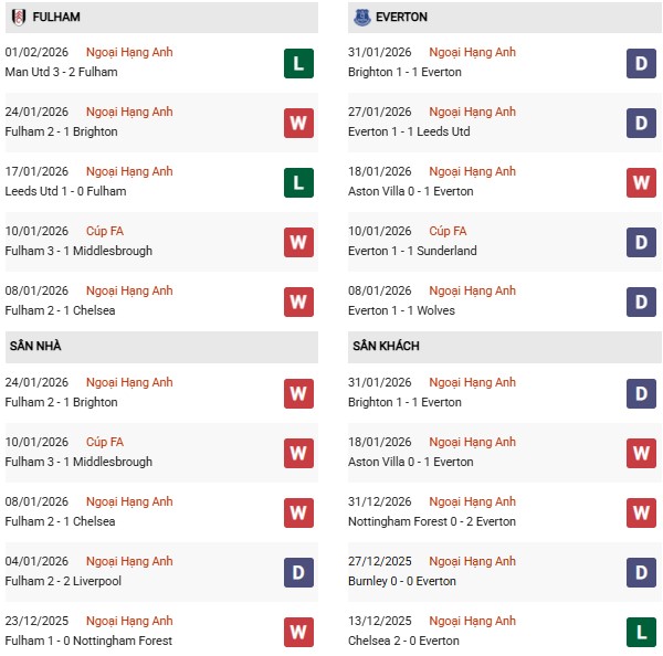 Đặc biệt, Everton đang sở hữu thành tích rất tốt mỗi khi làm khách trước Fulham. Họ bất bại trong 4 lần gần nhất hành quân đến Craven Cottage tại Premier League, đồng thời cũng không thua trong 4 trận sân khách gần đây ở giải đấu.
