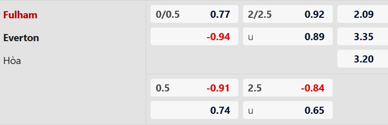 Nhận định kèo tài xỉu Fulham vs Everton: