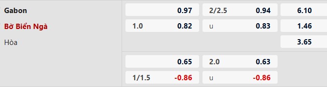 Như nhận định ở trên, Bờ Biển Ngà là đội được đánh giá mạnh hơn qua vị trí của 2 đội trên bảng xếp hạng của bảng F. Đây là điều sẽ khiến trận đấu có thế trận nghiêng về đội bóng mạnh hơn, cộng với viêc Gabon đã chắc chắn bị loại thì tinh thần thi đấu của họ không thể cao. Nhiều khả năng Bở Biển Ngà sẽ thắng đậm nên với tỉ lệ kèo họ chấp 1 thì khả năng vượt kèo là rất khả quan.