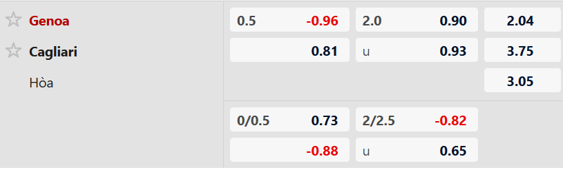Nhận định kèo châu á Genoa vs Cagliari: