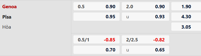 Nhận định kèo châu Á Genoa vs Pisa: