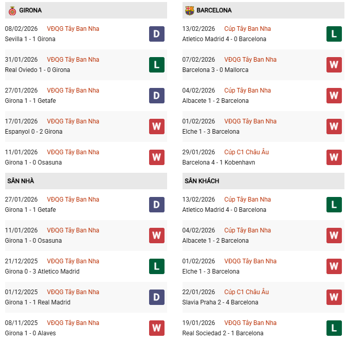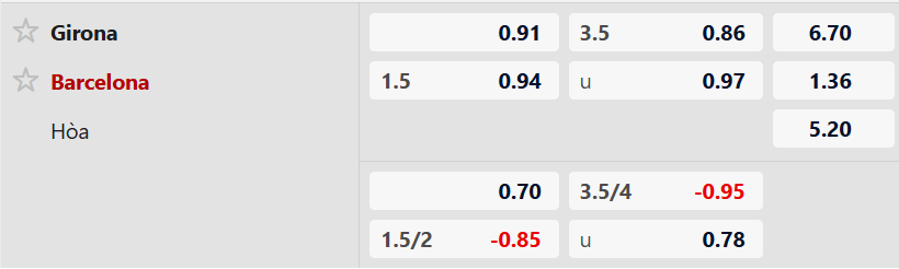 Hiệu suất ghi bàn: 4/5 trận gần nhất của Barca tại La Liga đều ghi ít nhất 3 bàn mỗi trận. Hàng thủ của Girona mùa này khá lỏng lẻo khi đã để thủng lưới tới 37 bàn sau 23 trận.