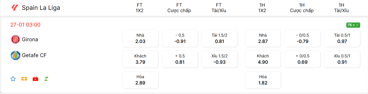 Với kèo Girona chấp -0.5, giới chuyên môn đánh giá cao khả năng đội chủ nhà giành trọn 3 điểm. Girona có lợi thế sân bãi, phong độ tốt hơn và hàng công đủ khả năng xuyên phá hàng thủ Getafe.
