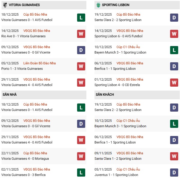 Thống kê phong độ Guimaraes vs Sporting Lisbon: