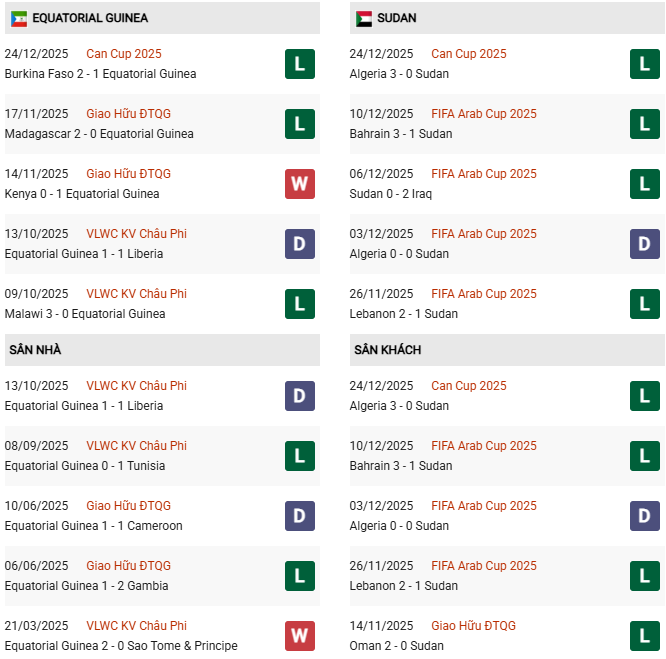 - Guinea Xích đạo đánh bại Sudan ở cả 2 lần đối đầu vừa qua.