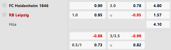 - Trong 4 trận đối đầu gần nhất, Heidenheim hoà 1, thua 4 trước RB Leipzig.