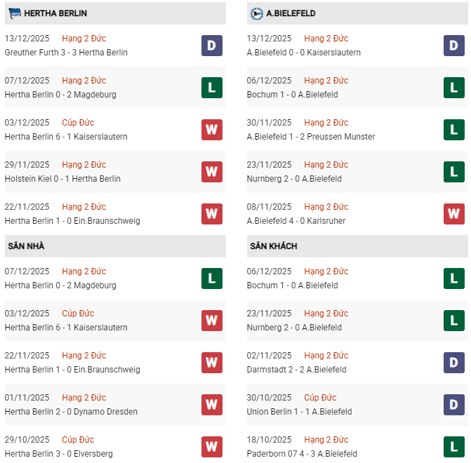 Thống kê phong độ Hertha Berlin vs Arminia Bielefeld: