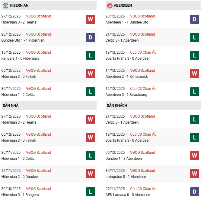 Một trong các cuộc đối đầu giữa các đội bóng cùng cân cùng lạng trong ngày cuối cùng của năm 2025 sẽ là cuộc chạm trán giữa Hibernian và Aberdeen. Hai đội ở các vị trí rất sát nhau trên BXH với khoảng cách chênh lệch gần như không đáng kể.