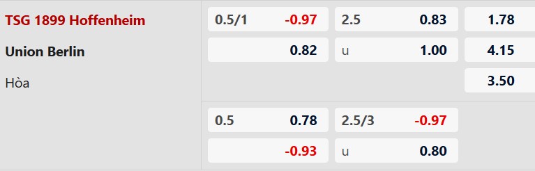 Union Berlin: Đang có dấu hiệu chững lại khi vừa để thua đậm Dortmund 0-3 và trải qua chuỗi 4 trận liên tiếp không biết đến mùi chiến thắng. Lịch sử đối đầu tại sân nhà của Hoffenheim cũng đang khá cân bằng nhưng nghiêng nhẹ về đội khách trong quá khứ, tuy nhiên phong độ hiện tại của hai đội đang có sự chênh lệch lớn.
