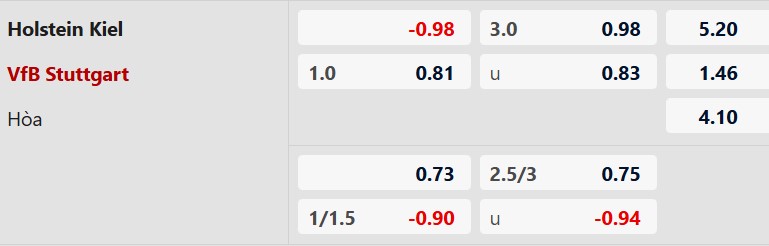 Nhận định kèo tài xỉu Holstein Kiel vs Stuttgart: