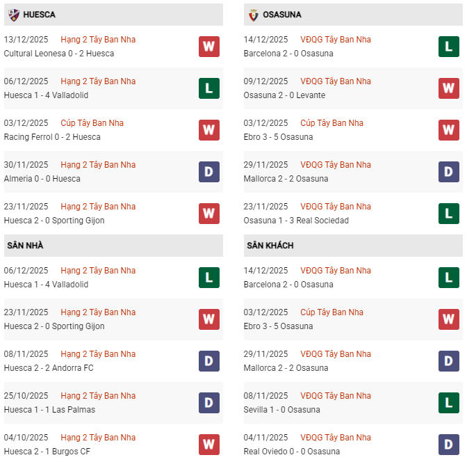 Osasuna vừa thua Barcelona 0-2, và HLV Alessio Lisci nhiều khả năng sẽ xoay vòng đội hình, trao cơ hội cho Ruben, Raul Garcia, Sheraldo Becker và Iker Munoz. Dù hàng công ghi trung bình 1.7 bàn/trận, hàng thủ lại thiếu chắc chắn khi tỷ lệ giữ sạch lưới sân khách chỉ đạt 29%. Đây là điểm yếu mà Huesca có thể khai thác.