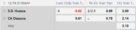 Nhận định kèo Huesca vs Osasuna, 01h00 ngày 18/12, vòng 1/16 Cúp Nhà Vua. Phong độ hiện tại của cả 2 là khá tương đồng nhau chính vì vậy đây hứa hẹn sẽ là một trận cầu cân tài cân sức.