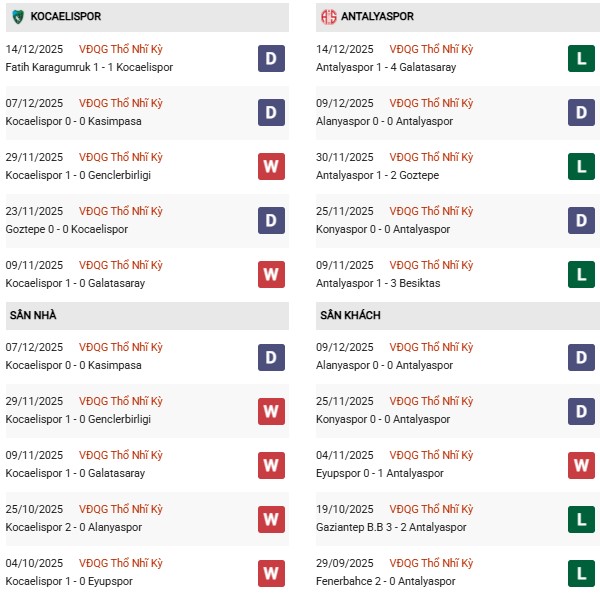 Thống kê phong độ Kocaelispor vs Antalyaspor: