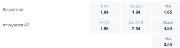 Antalyaspor chỉ ghi được 2 bàn trong 3 trận gần nhất còn Kocaelispor thì ghi được 3 bàn, con số thể hiện rõ hàng công của 2 đội đều không chơi tốt. Chính vì vậy trận đấu giữa 2 đội lần này được dự đoán có ít bàn thắng được ghi. Chọn kèo Xỉu chung cuộc.