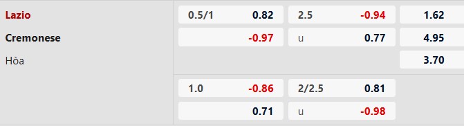 Dự đoán: Xỉu (Under) 2.5. Trận đấu khó có thể bùng nổ bàn thắng do Lazio thiếu các mũi khoan cánh chủ lực (Zaccagni, Isaksen) còn Cremonese sẽ tập trung phòng ngự số đông.