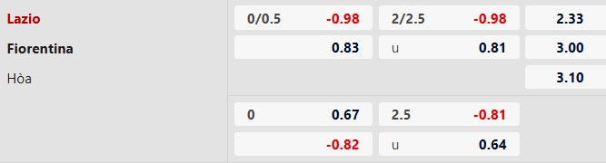 Nhận định kèo châu Á Lazio vs Fiorentina: