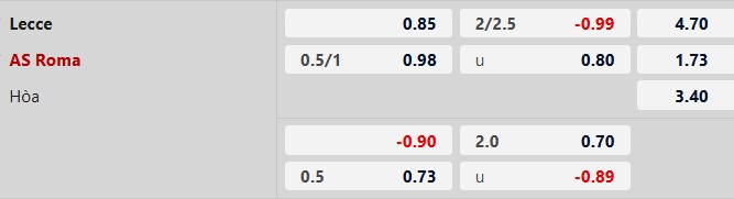 3/4 trận đấu gần nhất của Lecce có tối đa 2 pha lập công. 2/3 lần chạm trán đã qua giữa đôi bên cũng có kịch bản tương tự. Khi những trận đấu đã qua của AS Roma cũng không có thế trận quá tưng bừng, 90 phút sắp tới nhiều khả năng sẽ không vượt mốc 2 lần lưới rung.